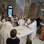 Κατά την απόλυση, ο Σεβασμιώτατος απηύθυνε λόγο πνευματικής οικοδομής προς το εκκλησίασμα, εξηγώντας με θεολογική σαφήνεια το βάθος και τη σημασία της Τελετής των Εγκαινίων, υπογραμμίζοντας ότι ο καθαγιασμένος Ναός και ιδιαιτέρως η Αγία Τράπεζα αποτελούν πηγή ευλογίας, δύναμης και παρηγοριάς για κάθε χριστιανό, ιδιαίτερα στις στιγμές θλίψεως και δοκιμασίας.