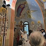 Πλήθος πιστών κατέκλυσε τον Ιερό Ναό, συμμετέχοντας με κατάνυξη στην ιερά ακολουθία των Εγκαινίων, η οποία αποτελεί κορυφαίο γεγονός στη ζωή κάθε χριστιανικής κοινότητας, σηματοδοτώντας την καθιέρωση του ναού ως τόπου μόνιμης παρουσίας της Θείας Χάριτος.